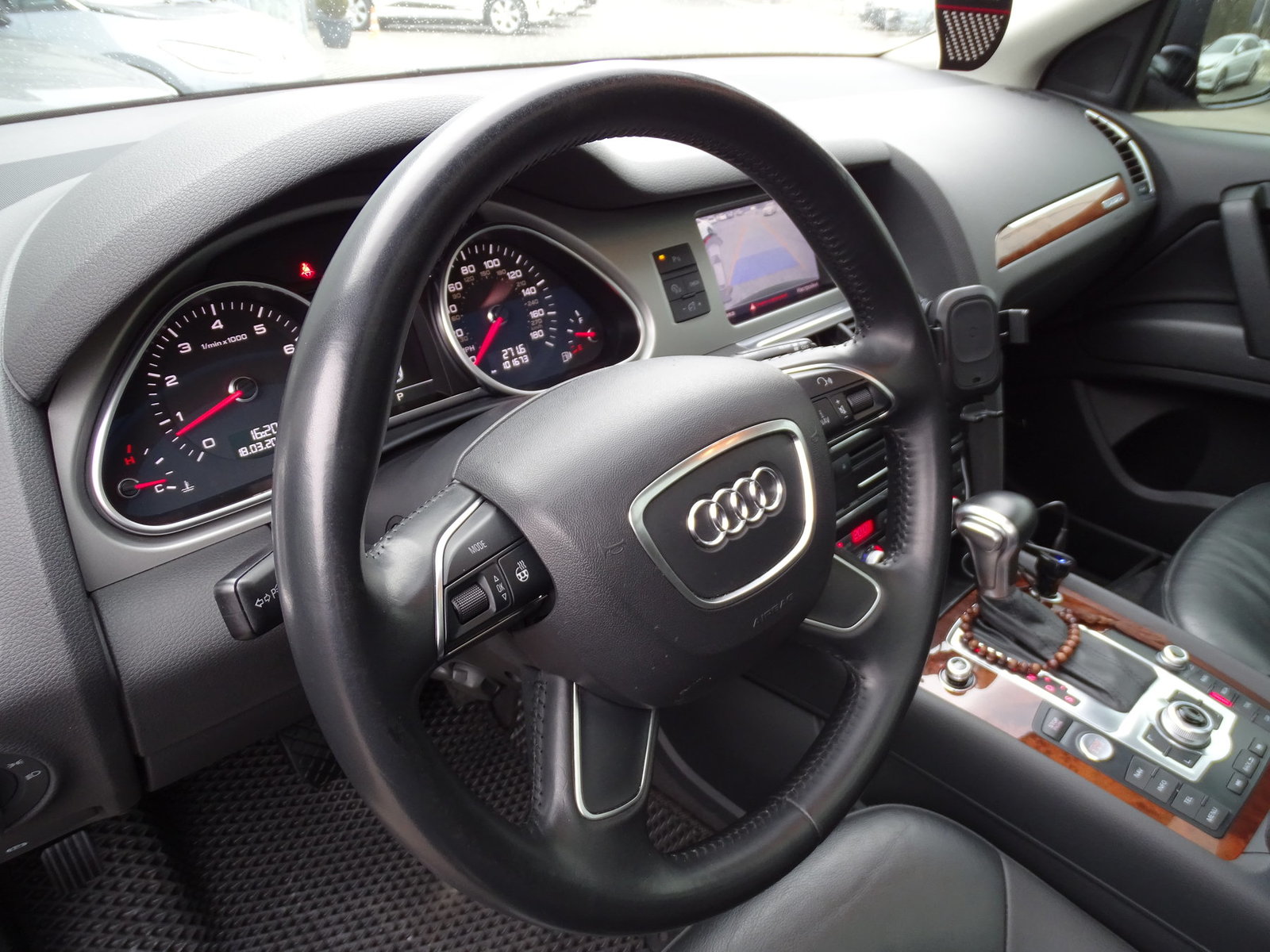 Модернізований автомобіль Audi Q7 2013 модельного року отримав новий бампер, видозмінену фальшрадиаторную грати і світлодіодну оптику. П'ятиметрова машина Audi Q7 має значний вид. На фото в галереї модель можна розглянути з різних ракурсів. Величезні бічні дзеркала забезпечують чудову оглядовість водієві позашляховика. Інтер'єр Ауді Ку7 2012 року доповнився світлодіодним підсвічуванням. Панель приладів обладнана новим дисплеєм збільшених розмірів. Деталі салону «ку-сьомий» оброблені хромом.